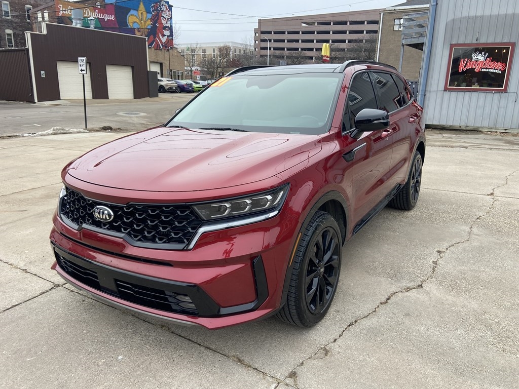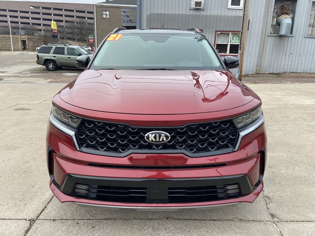 Step into the driver's seat of this stunning MAROON 2021 Kia Sorento and get ready to experience the ultimate adventure on the road! This sleek and stylish SUV is guaranteed to turn heads wherever you go, with its bold color and modern design.